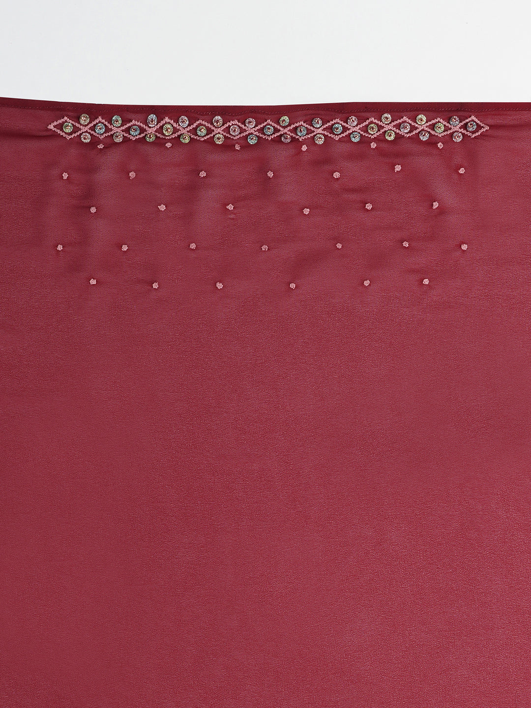 Handwork at Forehead, Soft Georgette Fabric,80 Inches Length And 28 Inches Width, Perfect for Wedding and Festive Occasions, Lightweight and Breathable