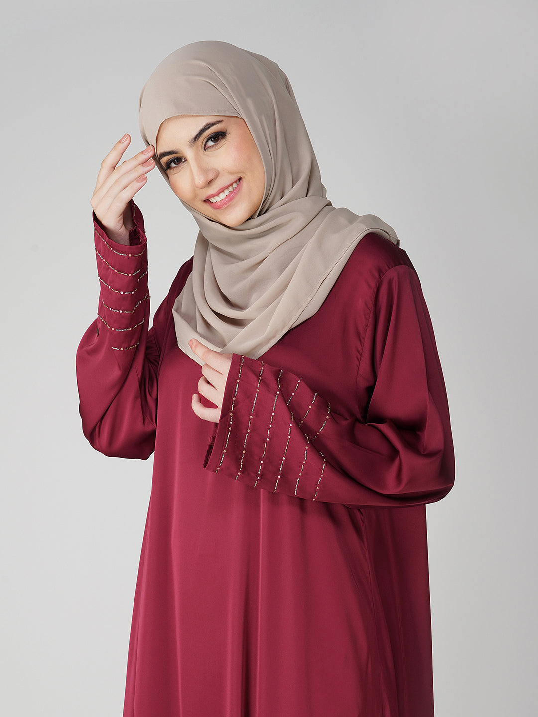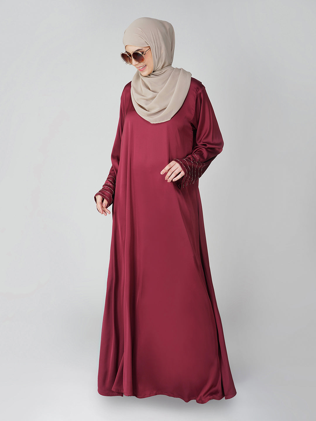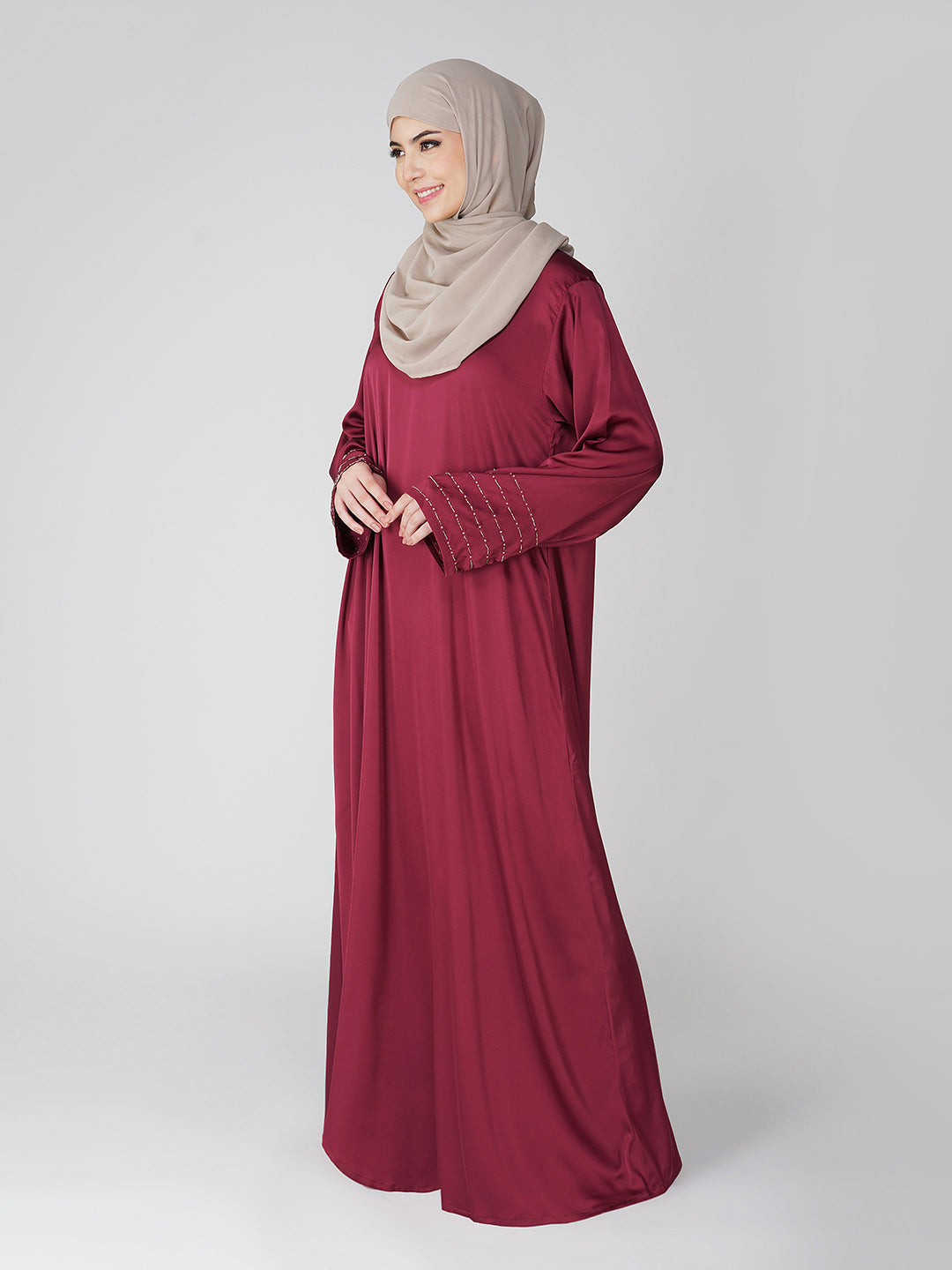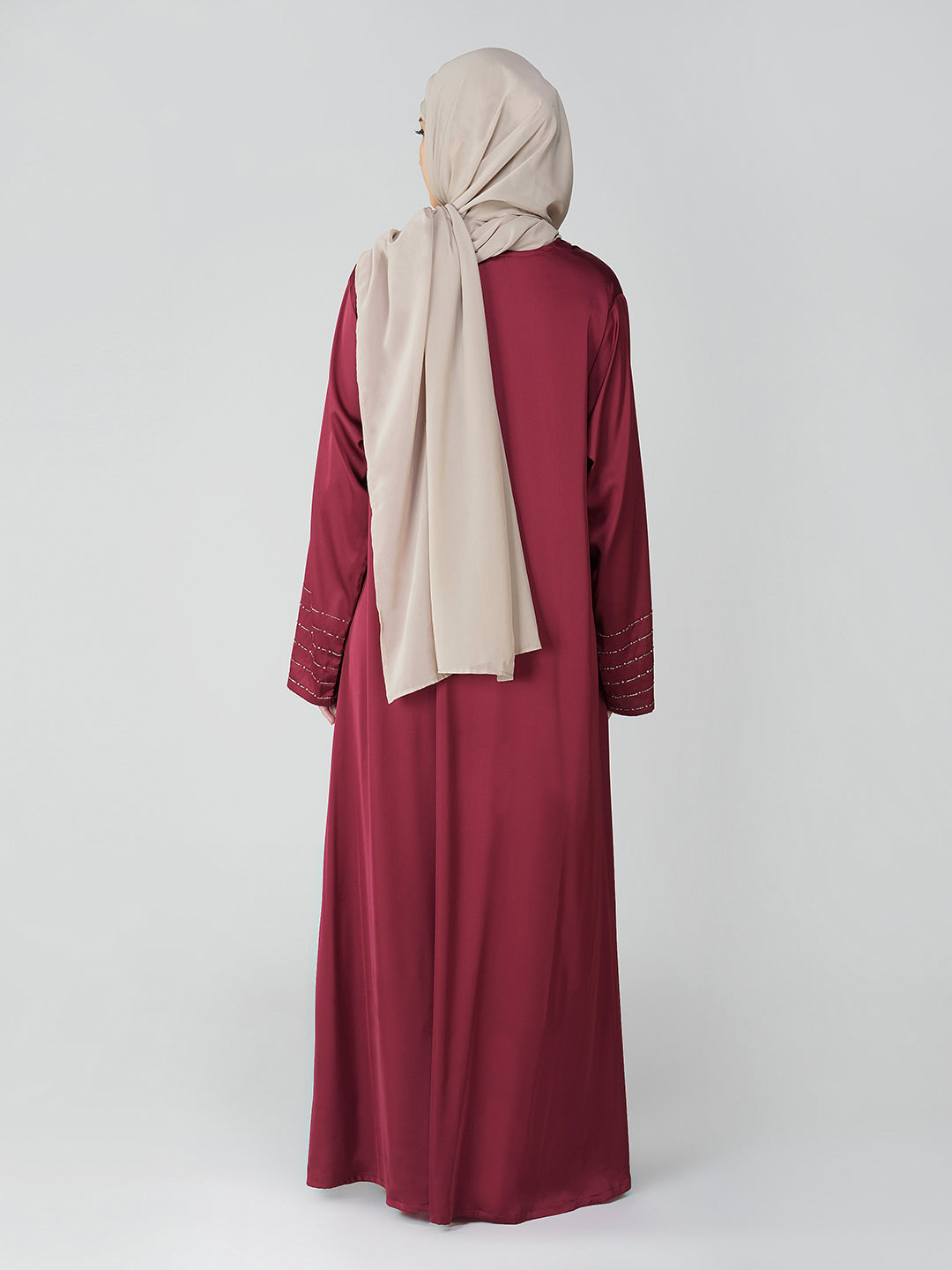Basic Abaya, Front Closed, Lightweight and Flowy, Handwork Sleeves, Lustrous and Silky Finish, Dupatta Included with Handwork at Side