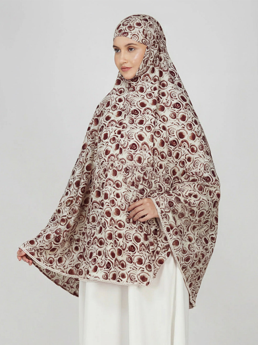 Floral Print, Soft Rayon Fabric, Attached Sleeves, 40 Inches Front And 44 Inches Back, Ready To Wear, Lightweight And Breathable, Tie Up Detail At Back, Ideal For Salah